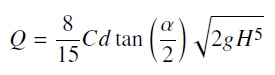Teniendo el valor del medidor de punta con el caudal estabilizado y las características geométricas del vertedero triangular se procede a calcular el caudal para vertederos con la ecuación (2).