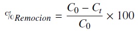 Ct: concentración del metal en el tiempo t, una vez finalizado el tratamiento, ppm.
