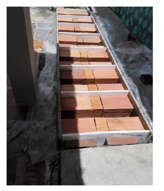 Una vez colocados los bloques y el acero de refuerzo correspondiente con separadores que garantizaran el espesor de recubrimiento definido se procedió a vaciar la mezcla de concreto, enrasando a una altura predeterminada de cinco centímetros de espesor de loseta. Se desencofraron luego de 24 horas y se dispusieron en un lugar protegidas de la intemperie, hasta cumplir la edad de 28 días de vaciado.
