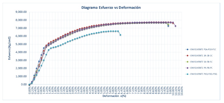 El diagrama esfuerzo-deformación obtenido para el acero evaluado difiere del diagrama típico para un acero S-60, identificación rotulada en las cabillas. Al realizar el ensayo los diagramas reflejan el comportamiento de un acero especial y no de un acero ordinario debido a que los diagrama esfuerzo deformación no presentaron un escalón de relajamiento, además de presentar valores más altos en cuanto sus esfuerzos alcanzados.