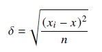 (3)Donde δ es la desviación estándar, xi es la pérdida de peso de la muestra (g), n es la cantidad de muestras y x es el promedio de la pérdida de peso.