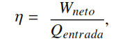 Qentrada: Calor Transferido al fluido de trabajo [kJ/kg].