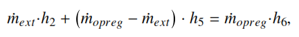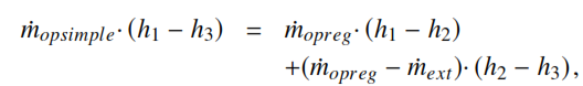 Así, el efecto que podría producir la regeneración sobre la demanda de calor, para una misma salida de trabajo neto, referida a la de un ciclo operando en forma simple entre las mismas presiones de operación de la caldera y el condensador, respectivamente; puede analizarse, por medio de la aplicación del balance de energía, según la Ecuación (2)