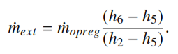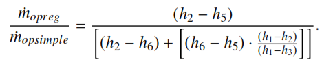 (5)Al sustituir la Ecuación (5) en la Ecuación (3), resulta la expresión para la relación de flujos de operación del ciclo regenerativo y el ciclo simple, según la Ecuación (6)