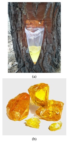 La resina de pino es una fuente de compuestos terpénicos de gran importancia para el desarrollo de la industria de químicos y polímeros naturales. Químicamente se trata de una solución de colofonia (residuo no volátil) en trementina (fracción volátil). La utilización de la colofonia es muy antigua, una vez separada de la trementina, se utilizaba como sellante e impermeabilizante, aplicación principal de este recurso para la construcción y conservación de navíos entre los siglos XIX y XX [1]. Ambas fracciones contienen moléculas que constituyen bloques de construcción para una variedad de compuestos derivados, poliméricos en su mayoría, involucrados en la producción de múltiples bienes de consumo masivo. La colofonia, componente mayoritario de la resina de pino (70 %), es una mezcla de ácidos carboxílicos tricíclicos de alto peso molecular, compuesta principalmente por los ácidos abiético y pimárico, en una variedad de isómeros [2].