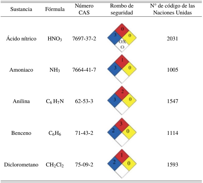 Se procedió a realizar un inventario para todas las sustancias presentes en ambos laboratorios. Posteriormente se documentaron las sustancias químicas que se utilizan en cada práctica, y se clasificaron de acuerdo a sus características de peligrosidad demostrada mediante el rombo de seguridad, número de CAS y el número de código de las naciones unidas (ONU).