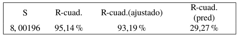 En lo sucesivo, se muestra el resultado del análisis de varianza del modelo de regresión realizado en el programa Minitab: