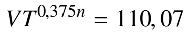 De los puntos de intersección de la Figura 1 gráfico desgaste vs. tiempo, para f = 0,08 mm/rev y d = 1,5 mm se obtuvo que para V1 = 26,394 m/min el valor de T1 = 45 min y para V3= 38,902 m/min el valor de T3 = 16 min.