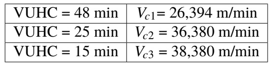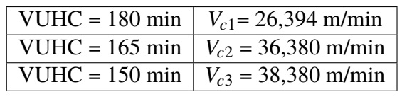 Considerando que la VUHC se determina tomando los puntos de intersección entre el criterio de desgaste y las diferentes curvas de las velocidades presentes en cada gráfico, según las condiciones de las mismas.