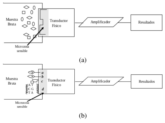 Un sensor se puede definir como una microzona sensible donde tiene lugar la interacción química o bioquímica que está conectada o integrada con un traductor físico que puede ser óptico, electroquímico, térmico o másico. Esta permite transformar la respuesta del sistema en información analítica que se genera “in situ” y a tiempo real. La Figura 1, muestra las partes de un sensor químico y bioquímico. Estos sensores proporcionan bajos límites de detección y determinación, alta sensibilidad, precisión elevada y fiabilidad de respuesta generada. Además deben ser reversibles, es decir, que la respuesta desaparezca en ausencia de analitos. La respuesta debe obtenerse a tiempo real, lo que facilita la toma de decisiones a tiempo [10].