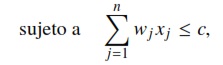 El KP 0-1 [16] constituye uno de los problemas más simples de la programación lineal. Aparece como subproblema en otros problemas más complejos y tiene diversas aplicaciones prácticas en la toma de decisiones del mundo real, tales como la búsqueda de patrones de corte para materias primas que generen el menor desperdicio posible [17], la selección de inversiones de capital y portafolios financieros [12] o la optimización de recursos computacionales [18]. Matemáticamente se expresa como [19]: