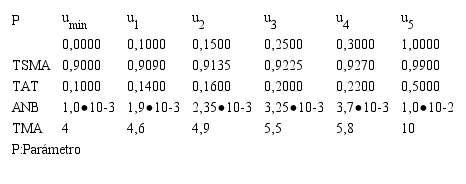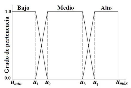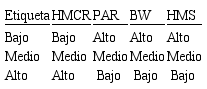 Parámetros del ABA, con redondeo de HMS al entero más cercano. Todas las variables se granularon mediante tres (03) conjuntos difusos, con etiquetas “Bajo”, “Medio” y “Alto”, caracterizados por las funciones de pertenencia de la Figura 1. Los valores asignados a los puntos de interés esquematizados se listan en la Tabla 1.