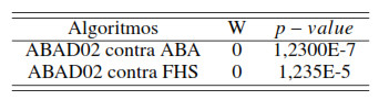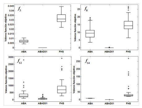 Los resultados de la prueba permiten afirmar, con un nivel de significancia del 0,05, que el ABAD01 representa una mejora significativa, respecto a ABA y FHS, como método de solución para los problemas de optimización tratados y bajo las condiciones experimentales antes referidas.