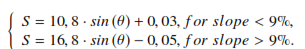 It is estimated using the equation (10) having length of the slope higher than 4 m [20].