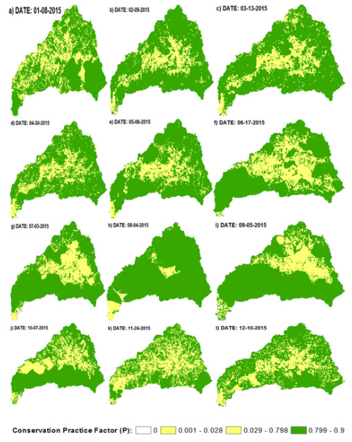 e) Conservation practice factor (P): the P factor (Figure 10) depends on the land use and land cover (LULC) shown in Figure 8.