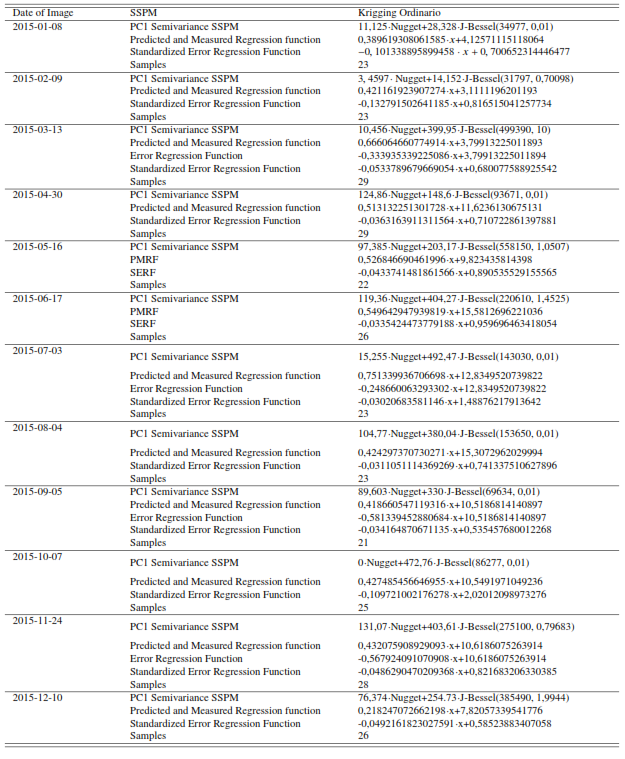 Where z(si) is the input point dataset, qk (s0) is the list of deterministic predictors and γ(h) is the covariance model defining the spatial autocorrelation structure. The type of SSPM used is the statistical model called Ordinary Krigging (OK), whose technique was developed by [11]. The predictions are based on the model refered by the equation (6):