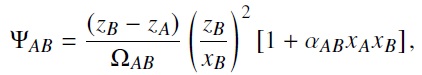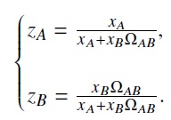 Debido a la forma funcional de ΩAB, estas expresiones guardan cierto parecido con la concentración local propuesta en la teoría de red de Aranovich–Donohue [6]. Sin embargo, como se discutió más arriba, las cantidades zA y zB se refieren a fracciones globales.