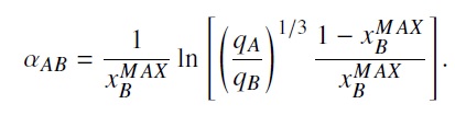 Mientras que αAB , esta relacionada con la composición del líquido donde es máxima (xBM AX) a través de la ecuación (14)