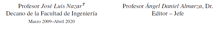 Presentamos el volumen 27, N° 1 de Revista Ingeniería UC en medio de una situación particularmente diferente frente a la realidad que ha representado la pandemia por la covid-19, enfermedad generada por el virus SARS-CoV-2. En este sentido, queremos resaltar y agradecer tanto los esfuerzos del equipo editorial y revisores, como el de todos los autores que han trabajado junto a nosotros, ajustándose a las diversas medidas adoptadas en todas las latitudes para contener y superar los brotes del virus, y que vale mencionar, han implicado cambios contundentes en nuestros modos de trabajar y relacionarnos, alcanzando, más allá de ello, la presentación de los artículos que hoy día conforman este número, que dedicamos con todo el afecto y respeto al Prof. José Luis Nazar Álvarez, quien nos acompañó como Decano de la Facultad de Ingeniería desde el año 2009 hasta el día de su sensible fallecimiento el 13 de abril de 2020, y a quien ofrecemos un sentido homenaje.