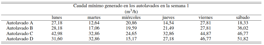 En la Tabla 2 se muestra la variación del caudal residual mínimo generado de aguas residuales diariamente durante la primera semana de medición. Los resultados presentados son el producto simple de la repetibilidad por triplicado de cada muestreo para determinar la variación del caudal mínimo de agua residual generada.