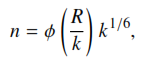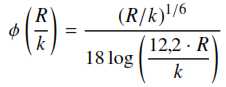 Las investigaciones realizadas sobre el tema indican que para un amplio rango de R/k , la variación en φ (R/k ) es pequeña, y ésta, puede suponerse constante e igual a un valor promedio. Es así que, la ecuación (9) queda determinado en función de la potencia de la altura de rugosidad (k ), [7].