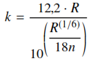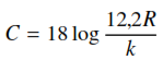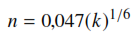 Combinando la Figura 3 y la ecuación (9) se obtiene n en función de la altura de rugosidad, k , dado por la ecuación (22).