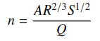 (15)Donde, A, es el área hidráulica, R, radio hidráulico, S, pendiente media y Q, es el caudal en la sección transversal de interés.