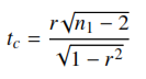 (21)Donde, n1, es número de pares de valores. Así mismo, el t tabular, tt se obtiene de las tablas estadísticas de la distribución t preparadas para este fin con un nivel de significación α o una Probabilidad de (1 − α) y con Grado de Libertad (G L = n1 − 2). Es decir, α/2 = 0,025 y G L = n1 − 2. Por último, se aplicó el criterio de decisión: si |tc | ≤ tt , entonces r = 0 por tanto no hay correlación significativa; en cambio, si |tc | > tt , entonces r , 0 por tanto es significativo y existe correlación entre las variables.