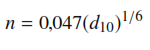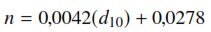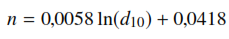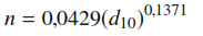(24)Para el método de Cowan, el modelo Logarítmico presenta mejor ajuste con un coeficiente de correlación, r = 0,869 entre las variables n y el d10. De esta forma se obtiene el modelo logarítmico (MLog) dada por la ecuación (25).
