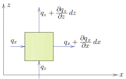 Se puede observar que el flujo está precisamente en la dirección X si el valor de Φ es constante en esta dirección. Observe que la condición qz = 0 si ∂Φ/∂ x = 0. De manera similar, el flujo está en la dirección Z solo si es constante en dirección Z , porque se deduce que qx = 0 si ∂Φ/∂ z = 0.