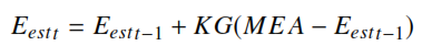 (12)Where t, M E A and E st are time, the measured value, and the estimated value, respectively. The third basic equation of a standard Kalman filter according to the equation (13).