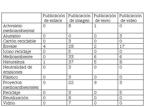 En todos los casos, destaca que los temas se tratan principalmente, a través de publicaciones de imagen, si bien cabe subrayar el caso de los envases, en los que hay un total de 17 publicaciones de vídeo con este contenido, una cifra muy por encima de cualquier otra temática tratada con este tipo de publicación.