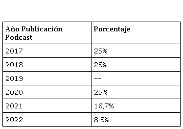 Tabla 5. Podcast y plataformas en las que se encuentran