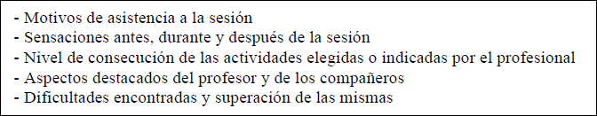 Los estados psicológicos negativos previos y durante la práctica suponen un inconveniente. La percepción de no competencia e inseguridad y el sentimiento de ridículo se superan mejor con la ayuda del profesional y del grupo.