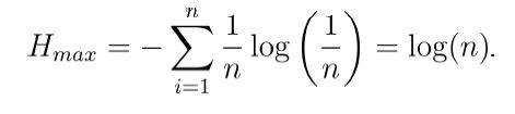 Por otro lado, la concentración máxima (menor regularidad) se obtiene cuando wi es siempre 0 excepto para un caso en el que es igual a 1. En tal caso, no es posible obtener la entropía al tener que calcular el logaritmo de cero.