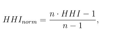 El índice de Herfindahl-Hirschman, HHI, es una medida usada para medir el grado de concentración (Depken, 1999; Owen et al, 2007). Para los datos generados por un individuo en un apartado estadístico concreto se calcula a partir de: