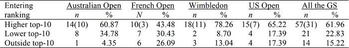Entering tennis men’s Grand Slams within the top-10 and its relationship with the fact of winning the tournament