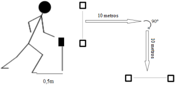 Test de Sprint con Cambio de Dirección. Todos los participantes realizaron dos esprines de 20m (10+10m) con un de COD de 90º (Figura 1) hacia la derecha (COD-D) y dos esprines con un COD de 90º hacia la izquierda (COD-I) (Hader, Palazzi y Buchheit, 2015). En el inicio de cada test el pie delantero se colocó 0,5m antes de la primera fotocélula (Polifermo Light Radio, Microgate®, Bolzano, Italia). Para el posterior análisis estadístico se eligió el mejor valor de cada test. Se estableció un tiempo de recuperación de 2min entre repeticiones. El tiempo en el sprint lineal de 20m de distancia fue usado con el tiempo en el sprint con cambio de dirección de 20m para el cálculo del porcentaje de pérdida de COD.