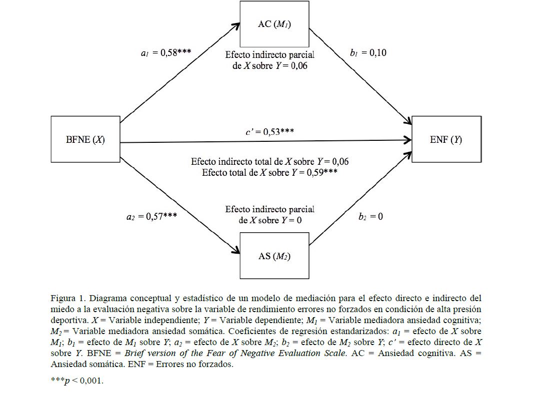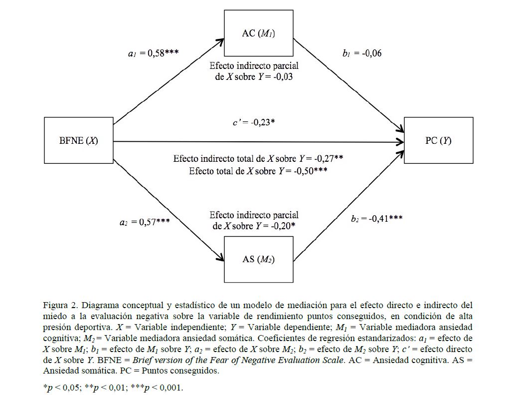 Ansiedad cognitiva y ansiedad somática como variables mediadoras del efecto del miedo a la evaluación negativa sobre el rendimiento deportivo.