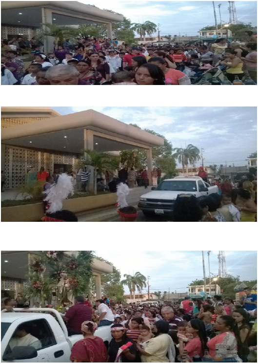 A finales del mes de junio, la iglesia del pueblo le da a la feligresía una imagen de la Virgen del Carmen8 con la cual se organizan procesiones para que visite cada uno de los sectores del pueblo. Esta interacción Iglesia Católica-feligreses es cohesionadora de los ciudadanos/as que en ellas participan, al mismo tiempo de ellos con su sector y con su pueblo: Carrasquero. Cada uno de los sectores se esfuerza en demostrar su emoción por la presencia de la deidad y en ofrecerle lo mejor que tienen; durante la misa ofrecen, generalmente, comida, flores, velas, cantos y oraciones. Las ofrendas las hacen niños y niñas, salvo en las oraciones en las cuales participan todos y en aquellos sectores donde contratan mariachis para el recibimiento. La imagen de la virgen se queda en la casa de un/una feligrés hasta el día siguiente cuando sale a visitar otro sector y se repite el rito de visita, hasta el 10-12 de julio.