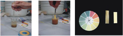 Para la medición de pH de la vasija 11B utilizamos dos métodos, con peachimetro portátil y con un papel universal; debemos aclarar que el primer método es más específico y puntual al momento de dar el valor de la potencia de hidrogeno, mientras que el segundo es más general, sin embargo, los dos métodos son válidos y nos permitirán conocer la acidez o la alcalinidad, proporcionándonos la información de cuál de estos predomina en la vasija y de qué manera la alteran.