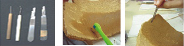 La técnica se realiza manipulando palillos de bambú y algodón sobre el objeto a depurar. Según la dureza de la pasta, se pueden –en un envase plástico con agua- sumergir los fragmentos, los cuales deben ser atendidos de una vez, ya que no pueden ser dejados allí por mucho tiempo, pues se puede perjudicar la pieza. Cuando se utiliza este método, hay que tener cuidado si los fragmentos tienen pintura, ya que esta se puede desprender.