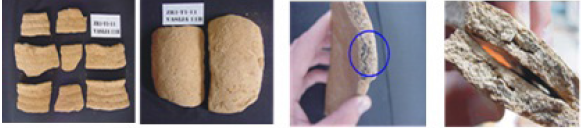 Excedentes de Tierra, sales Solubles, sedimentos de granos finos y gruesos. pH ácido, baja cocción, fisuras, traumas mecánicos, inadecuada práctica de manufactura y utilización de desgrasantes incorrectos y por último Bioturbaciones.
