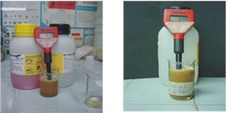Transcurrido el tiempo previsto, se destaparon los vasos, se agitó su contenido con una varilla de cristal y se introdujo el peachimetro ya calibrado (Imagen 6), marcando en su lector las siguientes cifras: