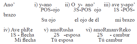 Al nombre poseído le precede la partícula –y, sólo sí el nombre poseído es una parte del cuerpo humano.
