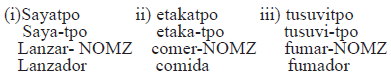 Estos sufijos funcionan como infinitivo. El sufijo –tpo también tiene la función de nominilizador, veamos los siguientes ejemplos: