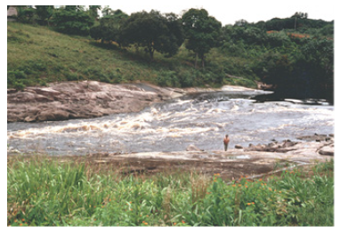 4. Hacia el raudal propiamente dicho se encuentran: a) una pequeña piedra que es identificada como “la tapa del cielo”; b) una laja o piedra mayor (jékuapipamúdzua o “Centro del Universo); c) cuatro buracos o huecos, dos de los cuales se denominan Jémani (danto). De ellos emergieron los primeros ancestros de la gente de la fratria Waríperidaakénai o “nietos de las Pléyades” (Curripaco). El tercer hueco recibe el nombre de jérridanapi o “comienzo de los hijos del cielo”2.