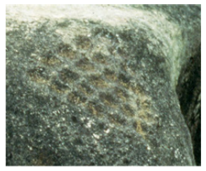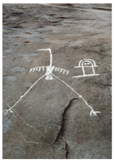 9. Amarru-rrúdana es una laja que tiene petroglifos (Figura 6). Estos representan los diseños de la pintura facial de Ámarru.