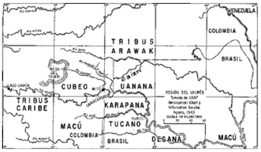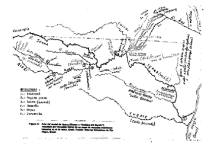 Toda esta región está habitada por grupos cuyas lenguas pertenecen a diferentes familias lingüísticas (Maipure, Tukano, Caribe, Witoto), así como otras no clasificadas. Los grupos Mai- pure se concentran fundamentalmente en el río Negro y sus afluentes (Isana, Aiarí, Xié, Guainía), el Guaviare, Inírida, Atabapo, Casiquiare, así como en el Alto Orinoco. Otro pequeño enclave Maipure ocupa un sector del territorio Tukano situado entre el Vaupés y el Apaporis (Goldman, 1963).
