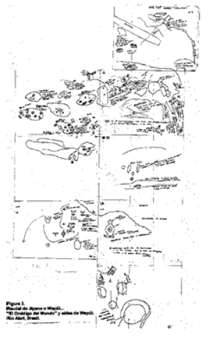 En la Figura 3 incluimos un plano detallado de los petroglifos y lugares sagrados localizados en Jípana u Ombligo del Mundo, en el raudal homónimo llamado también Wapúi, río Isana. También se ubica el poblado de Wapúi cuyo tuxaua o capitán es el Sr. Mandú Da Silva, gran sabio o chamán.